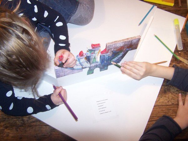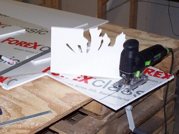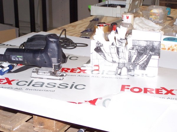 Een serie foto’s van het fabriceren van de maquette van de replica van de Kandelaar.